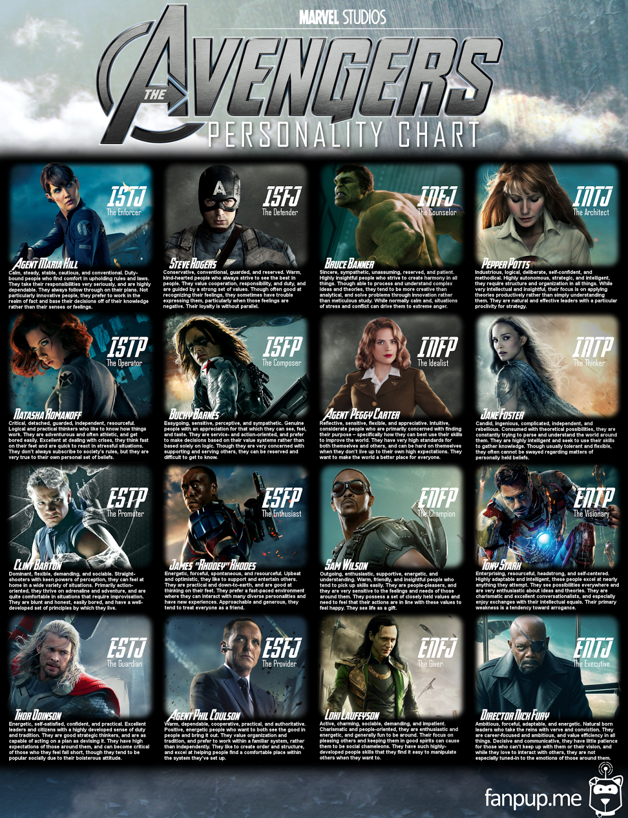 People also make tons of silly interpretations for all of these quizzes (again, obviously not scientific or accurate by any means, but amusing and sometimes fun to discuss), such as the Avengers MBTI or enneagram animals.